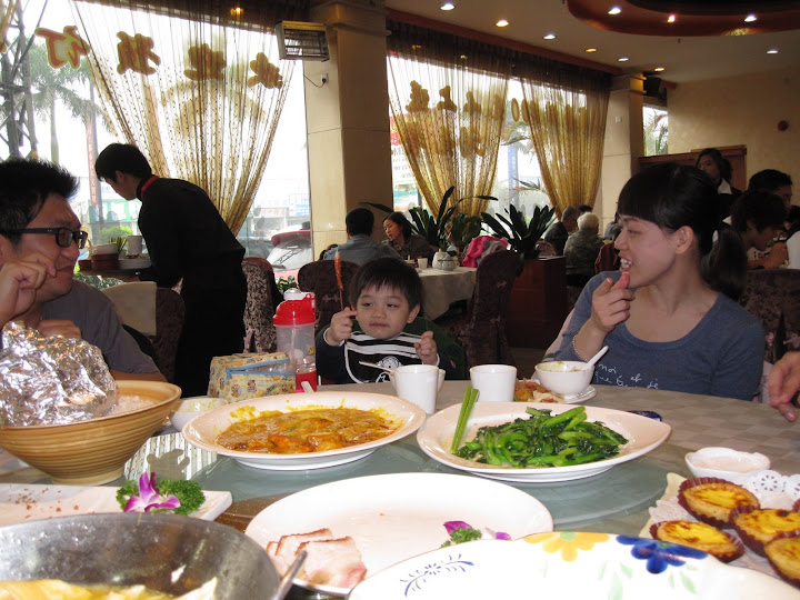 經過三個幾鐘頭嘅車程 + 過關, 大小姐瞓咗兩轉, 都叫做 charge 咗下電, 去到祈福新村, 會合埋 Tissue EE & Ivy EE, 我哋一行 9 大 3 小就乘車去 "駿粵大酒店"