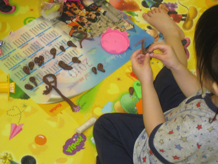 e家可以玩泥膠啦,我仲諗住等旨珺大d先買比佢玩[版主回覆05/16/2010 01:59:00]彤彤玩咗半年有多 la, 有一份仲係 CNY 去 Bangkok 時扭計要買 ga, 佢平時唔會扭買野 ga, 所以我同老公知道佢真係好鍾意玩泥膠